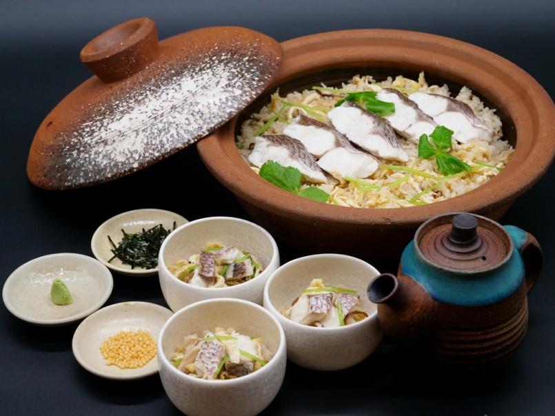 A:和食スペシャルメニューは毎週月曜日に追加提供しており、3月からは「鯛茶漬け」と「天婦羅」になります。「天婦羅」は2月までと同様に5種(海老・白身魚・かぼちゃ・ゴーヤー・紅芋)です。サクサクした軽い食感の衣が特徴で、塩と一緒に食べると食材の旨味や香りがより一層引き立ちます。「鯛茶漬け」は、鯛入り炊き込みご飯の上に、鯛の切り身を乗せ、そこへ熱い出汁をかけて召し上がっていただきます。出汁には、鯛の骨から煮出した旨味とシママース(沖縄の塩)の塩味、そしてランチに合うようさっぱりした味付けに仕上げており、ランチに来てくださることの多い沖縄の方にも内地の出汁の旨味を提供したく、このメニューを選びました。ぜひ皆様に召し上がっていただきたい一品です。