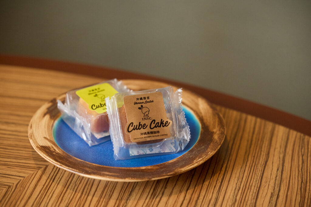 沖縄黒糖や県産パイナップル、紅芋パウダーなど沖縄ならではの食材を練り込み焼き上げた、ころんと可愛らしいキューブケーキをご用意。客室でほっと一息つけるコーヒータイムのお供におすすめです。