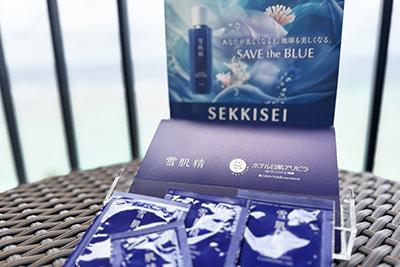 当ホテルでは、沖縄のサンゴ保全に取り組む環境保全プロジェクト、雪肌精「SAVE the BLUE~Ocean Project~」に賛同し、「雪肌精」のスキンケアアメニティをご用意しました。