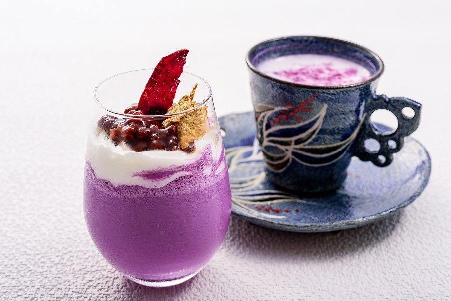 ソフトクリームと濃厚な北海道産牛乳に紅いもをブレンドしたシェイクが登場。ホイップクリームとあずきをトッピングし、食感のアクセントとして玄米のフレークを添えました。見た目もかわいいオリジナルシェイクをお楽しみください。