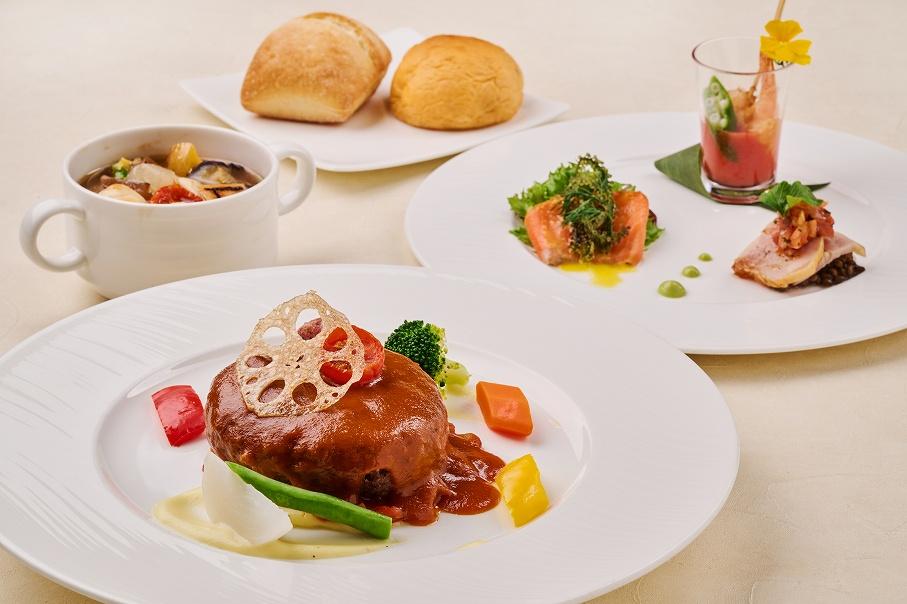 時間限定でお楽しみいただけるアーリー&レイトお得なディナー。3種の前菜をはじめ、具沢山スープや沖縄県産和牛のハンバーグなど、味わいもボリュームもご満足いただけるメニューを取り揃えました。事前ご予約で、指定のお時間にご来店いただいたお客様に限り、特別価格4,400円でご提供いたします。この機会に是非ご賞味ください。