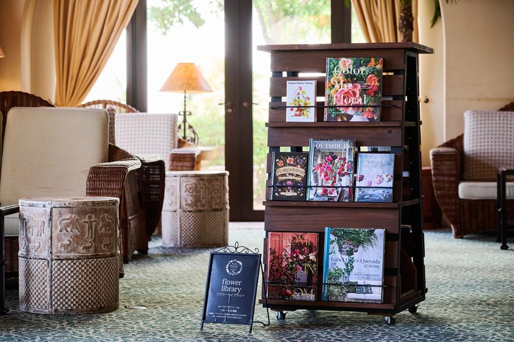 花や植物にまつわる書籍が並ぶ「フラワーライブラリー」がラウンジ店内にオープン。お気に入りの本とともにゆったりとしたティータイムをお過ごしください。